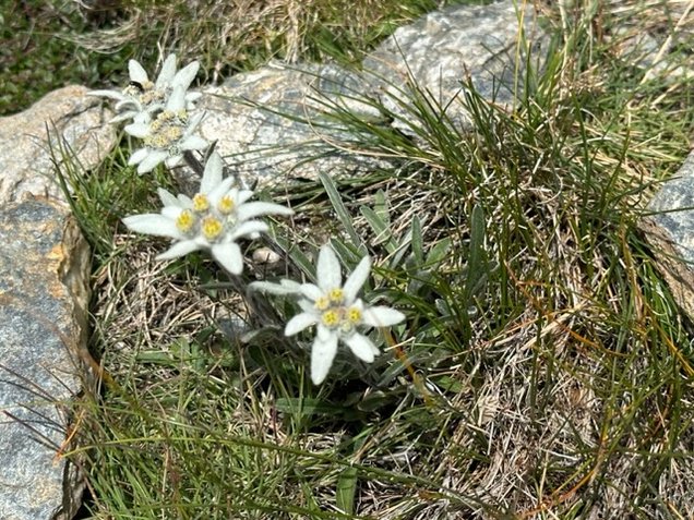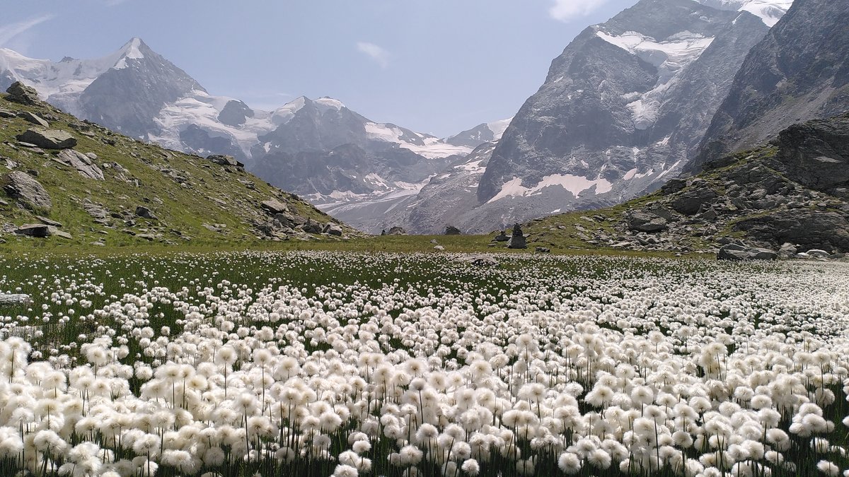 Weiße Blüten in einem sonnenbeschienenen Tal